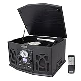 Pyle Home PTCDS5U Vintage Turntable with CD/Cassette/Radio/Aux-In/USB/SD/MP3 and Vinyl to MP3 Encoding(Black)