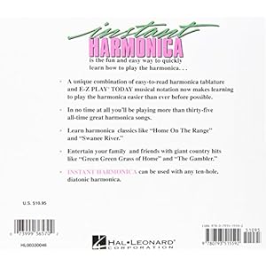(Book). Instant Harmonica is the book that makes learning harmonica fun and easy. In no time at all, students will be blowing a variety of tunes on their harp. The book includes a combination of tablature and EZ-Play notation and over thirty all-time great country and folk songs. Works with any ten-hole harmonica.